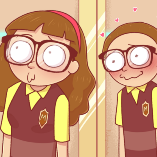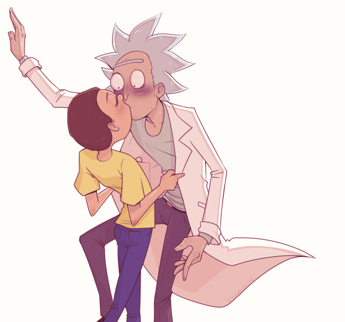 Older Morty + Tiny Rick.